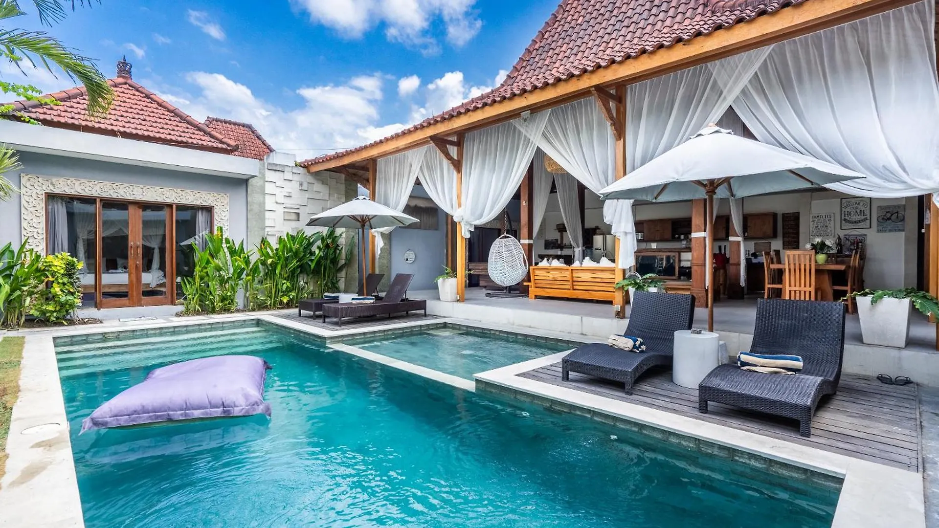 A cozinha totalmente equipada está equipada com mini frigobar e máquinas de café/chá, bem como microondas, chaleira elétrica e refrigerador para fins de auto-serviço. Localizado a apenas uma viagem de carro desta propriedade, Ultimo serve cozinha italiana. A estação de autocarros Seminyak Village - Line 4 também pode ser encontrada a aproximadamente 500 metros desta acomodação. A acomodação dispõe de solário, terraço ensolarado e jardim, juntamente com carros para uso dos hóspedes. Para garantir o entretenimento das crianças, esta pousada providencia brinquedos e jogos de tabuleiro.